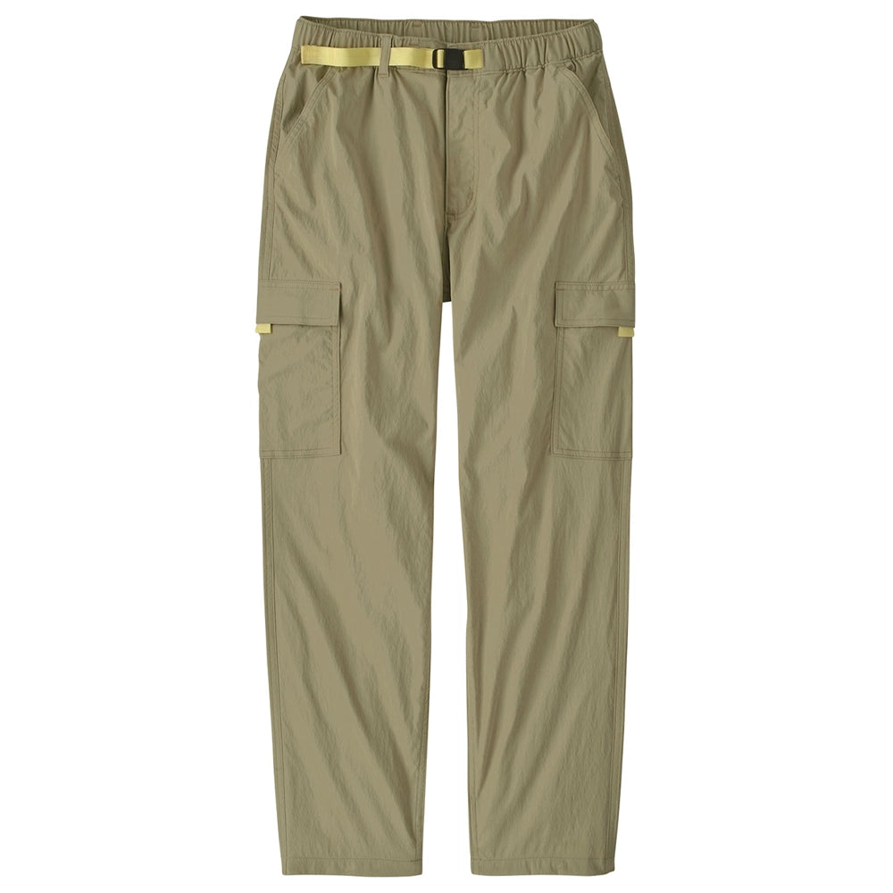 The Outdoor Everyday Cargo Pants fabric is treated with a durable water repellent (DWR) finish made without intentionally added PFAS and offers 40+ UPF sun protection. With an elastic waistband that has a zip fly and a button closure for secure fit. There's also an adjustable webbing belt that can be tucked into the belt loop to keep excess webbing at bay. Featuring two front drop-in pockets and two thigh cargo pockets that have flaps and hook-and-loop closures, with webbing tabs for ease of use.