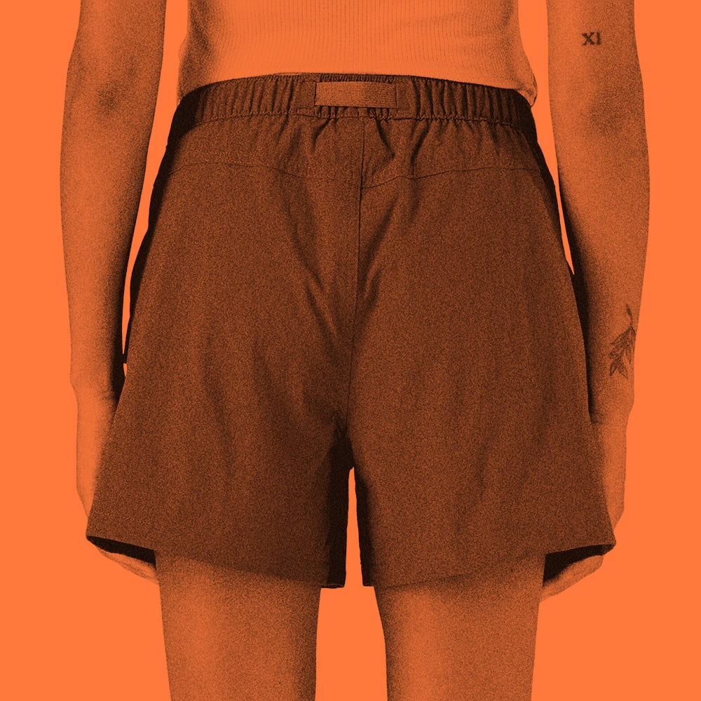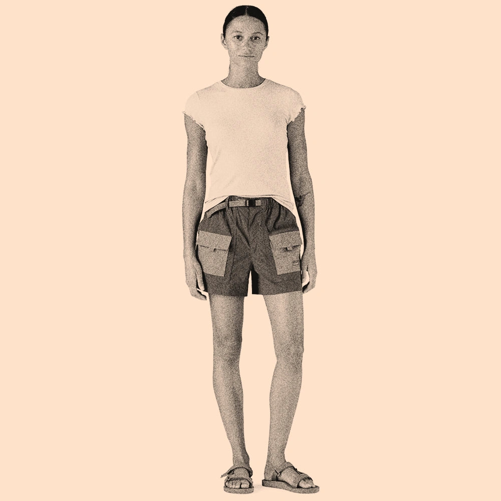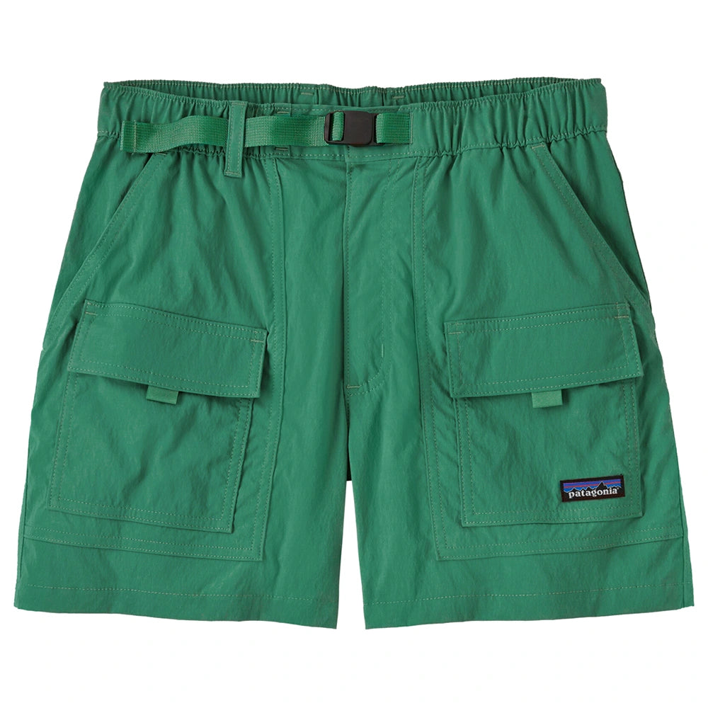 Featuring a mid-rise, these are relaxed-fit shorts with a 4" inseam. The elastic waistband has a zip fly and a button closure, with an adjustable webbing belt that can be tucked into the belt loop to keep excess webbing at bay. Two slash, drop-in front pockets and two front-thigh pockets have flaps and hook-and-loop closures, with webbing tabs for ease of use.