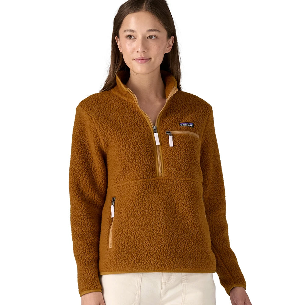 Retro-inspired high-pile fleece designed for rest days and campfire nights. The Women's Retro Pile Marsupial Pullover has a generous half-zip design that makes taking on and off a breeze, and three Vislon® zippers secure access to both chest and marsupial handwarmer pockets. Elastic binding around collar, center front, cuffs and hem keeps the warm air in and cold air out. Straight fit on side seams for a modern, boxy fit and comfort - perfect for layering!