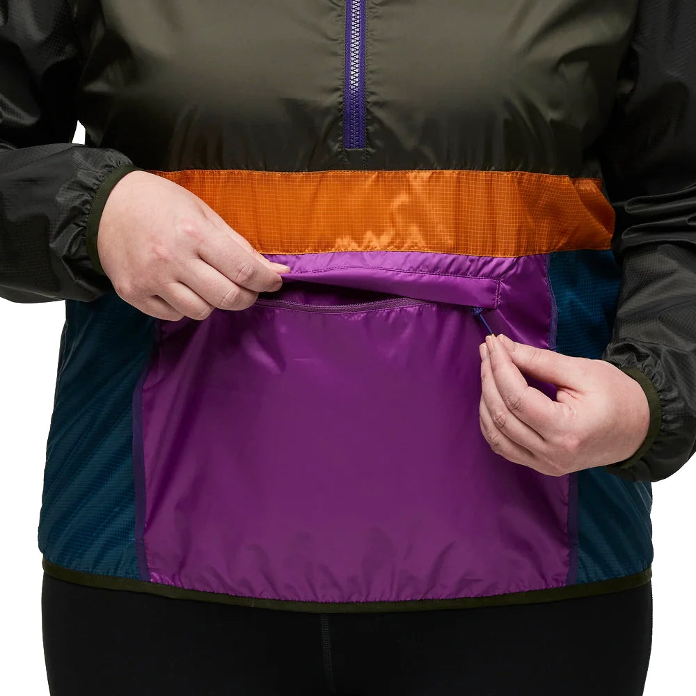The Teca Half-Zip Windbreaker from Cotopaxi is super packable and weather-resistant, with a DWR (Durable Water Repellent) finish. Made from repurposed polyester taffeta, it features an interior chest pocket that doubles up as a storage pouch.